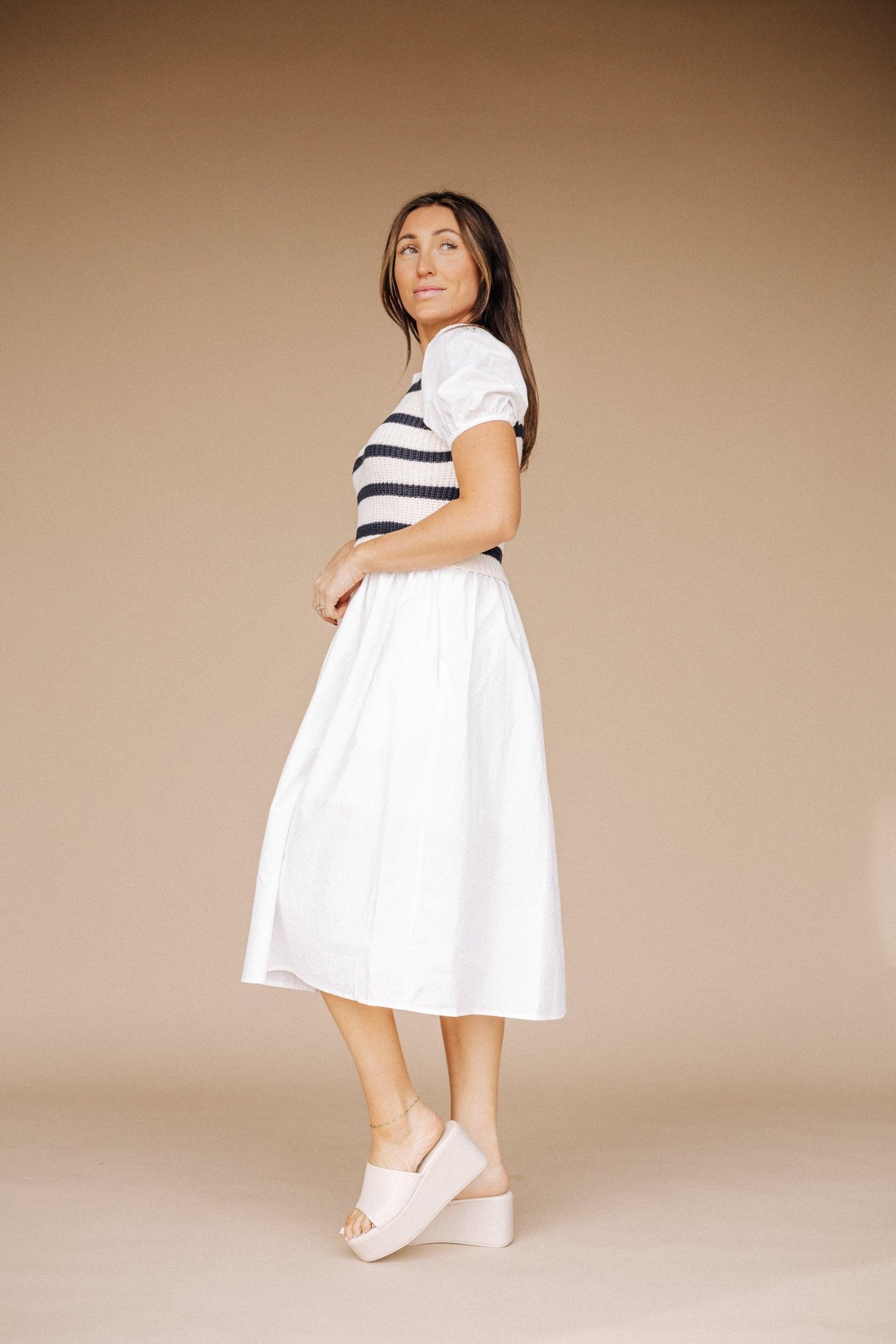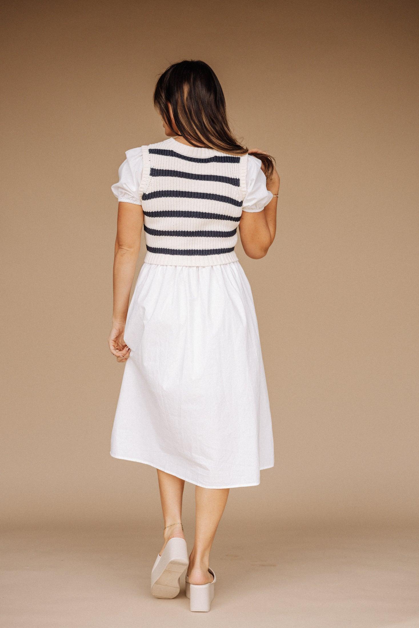 Indulge in the sophistication of the Annie Dress. The elegant puff sleeves add a touch of drama to this sweater top midi dress. while the midi length provides a tasteful and exclusive silhouette. Elevate your style with this luxurious piece. perfect for any occasion. Final Sale Item.