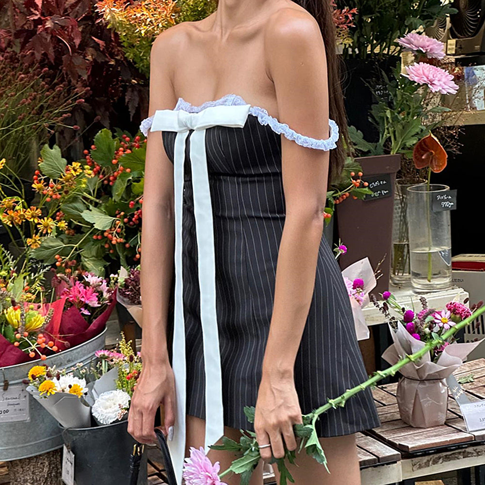 This aesthetic mini dress with bow tie in front
