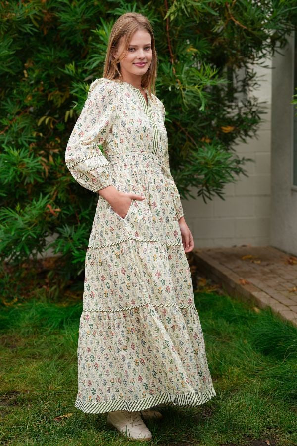 Elevate your wardrobe with the Honey 3/4 Sleeve Maxi Dress. a perfect blend of timeless elegance and modern flair. Featuring a fun print and modest. fully lined design. this maxi-length dress offers both comfort and style. Its sophisticated silhouette captures the trending look you desire while maintaining classic grace. making it ideal for any occasion where refinement meets effortless charm.