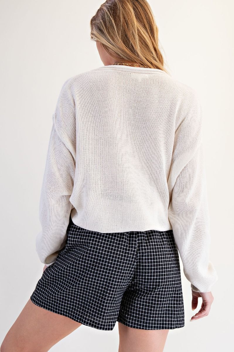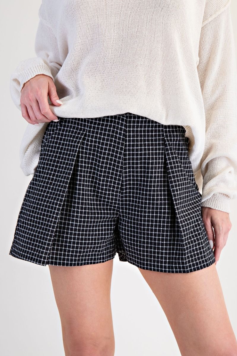 Experience cute comfort with the Kailee Checker Printed Shorts. Designed with a slouchy. loose fit silhouette. these shorts offer effortless elegance and ease of movement. Featuring side pockets for practicality and an elasticized back waist. they provide a tailored yet comfortable fit throughout your day.