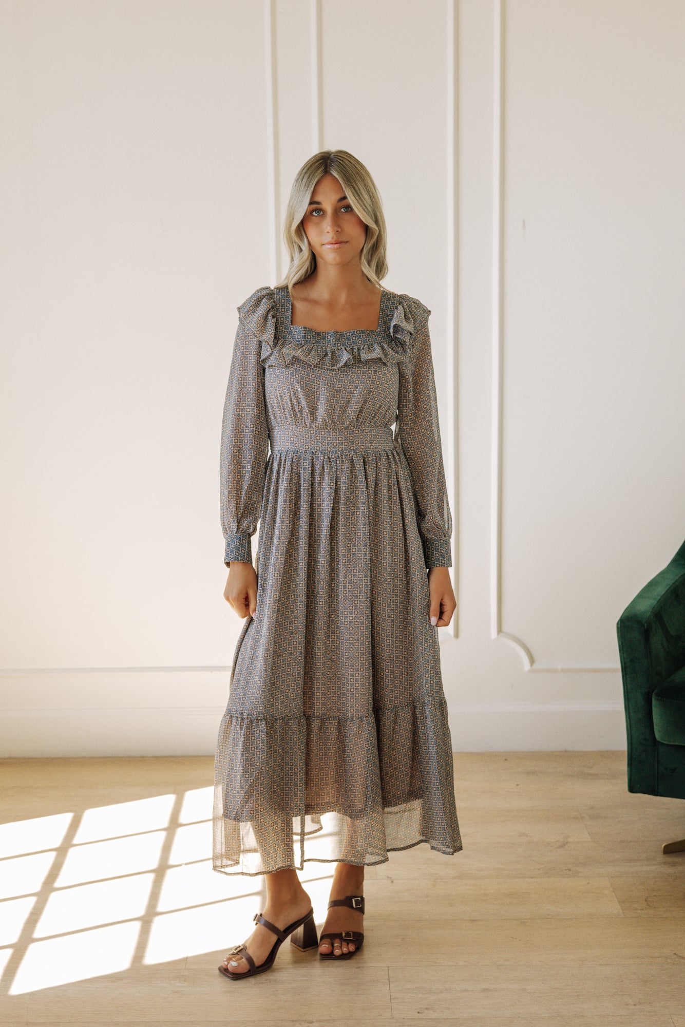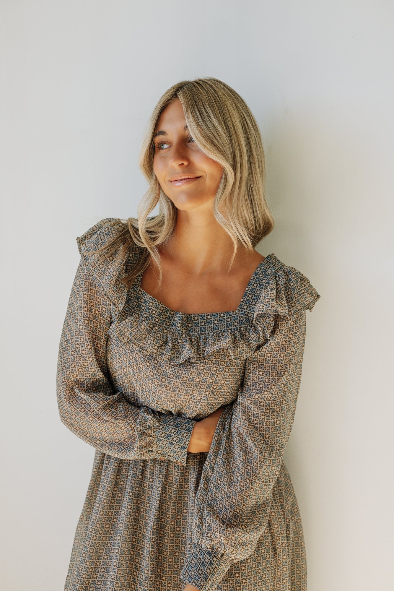 Go bold and playful with the Roxy Geometric Print Midi Dress! Showcasing a unique geometric print. this stylish midi dress features a square neck. button sleeve opening. and invisible side zipper for easy wear. Perfect for any occasion. this dress comes with a lining for added comfort. Get ready to turn heads with this fun and flirty piece!
